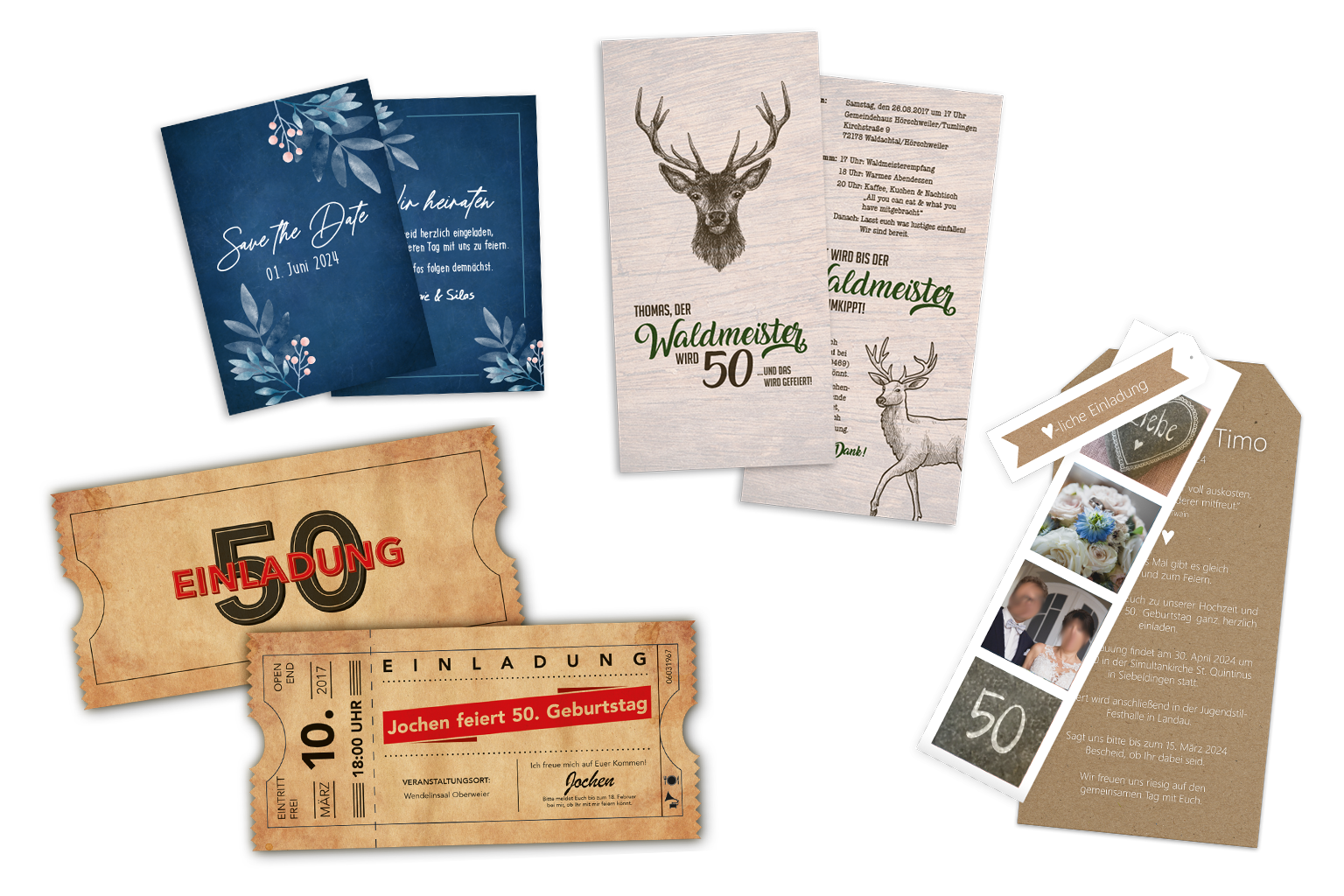 Ob für Geburtstag, Jubiläum oder Hochzeit. Individuell gestaltete Einladungskarten sind für jedes Fest ein ganz besonderer Hingucker und eine bleibende Erinnerung.