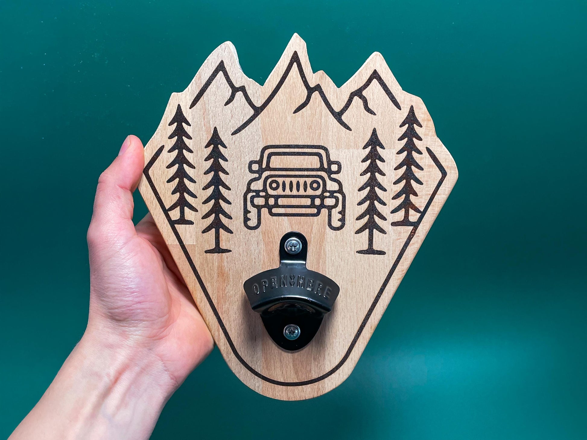 Magnetischer Flaschenöffner aus Holz – Jeeper & Camper Motiv