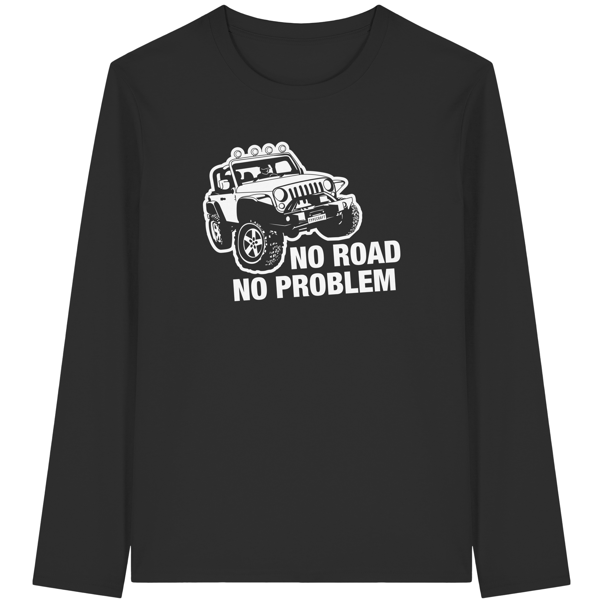 Organic Longsleeve T-Shirt – „No road, No problem“ für Offroad & Jeep Fans