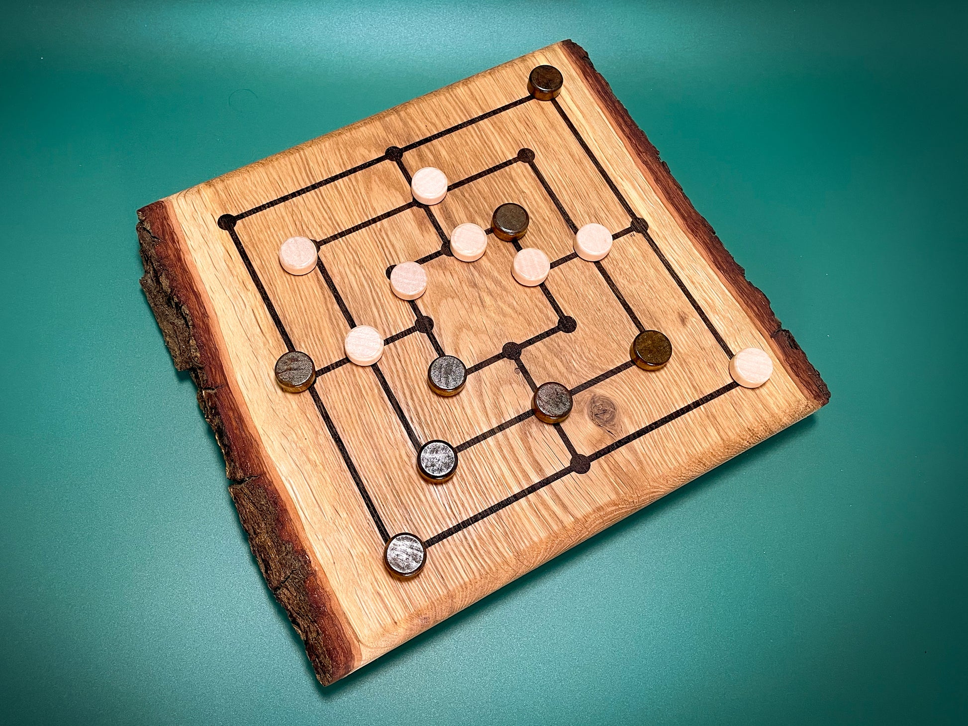 Handgefertigtes Mühlebrett aus massiver Eiche inkl. Spielsteinen – Eleganz trifft Handwerkskunst