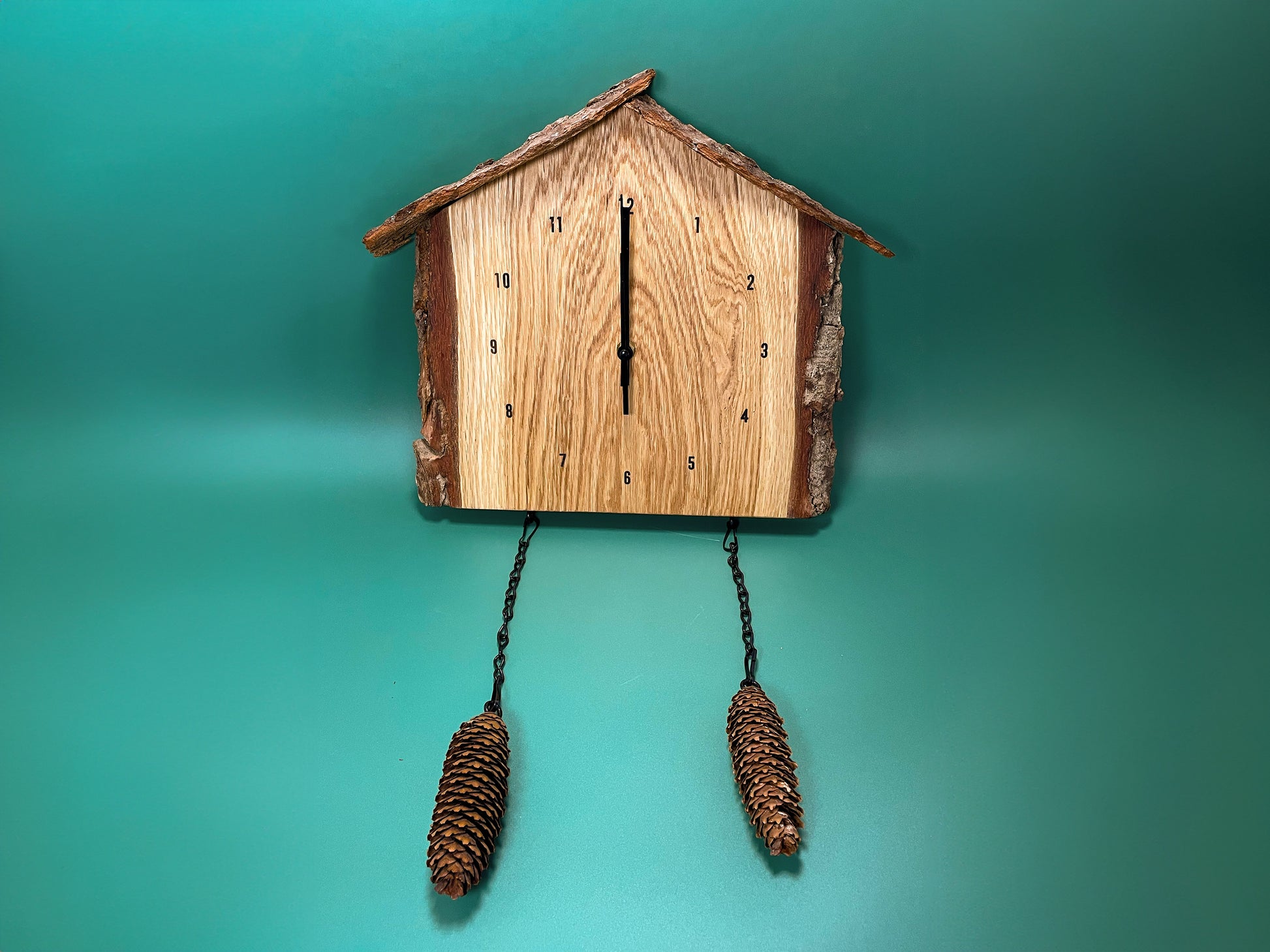 Schwarzwalduhr aus rustikalem Eichenholz – Handgefertigte Wanduhr im Naturdesign