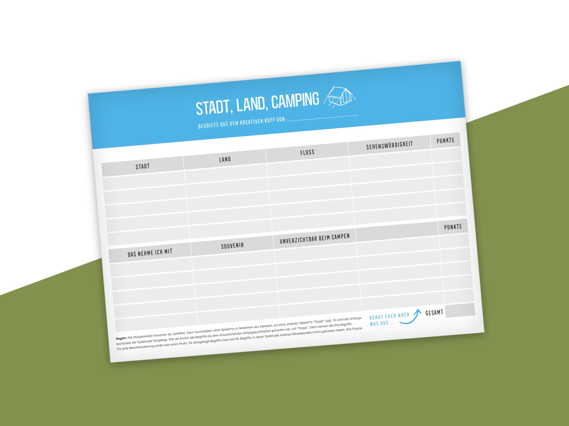👉 Hol dir jetzt den Spieleblock „Stadt, Land, Camping“ und bring Spaß, Lachen & gute Laune in deinen Campingurlaub!