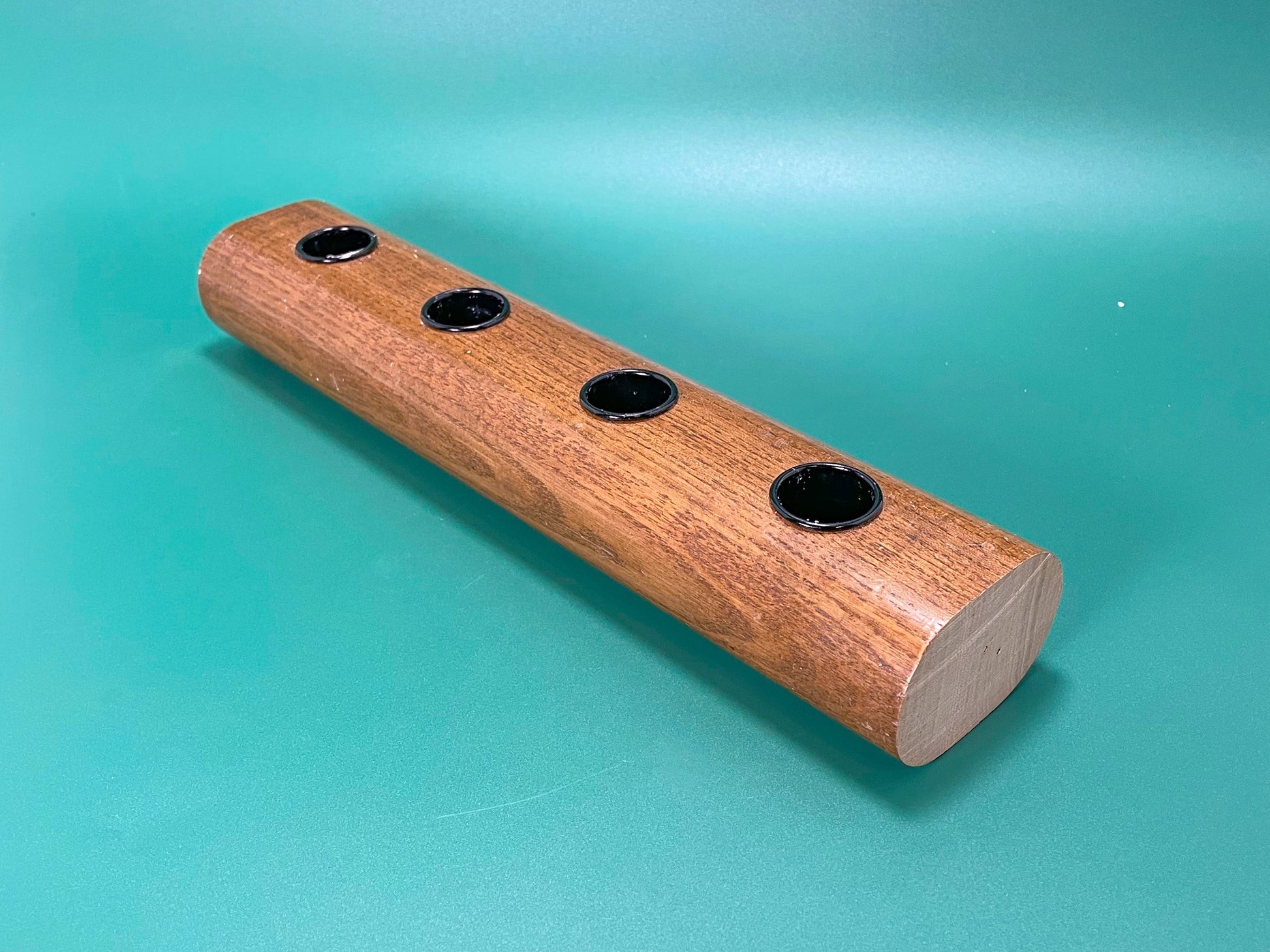 Mit einer Länge von ca. 25–30 cm bietet der Holzkranz die perfekte Größe für den Esstisch, die Kommode oder das weihnachtliche Centerpiece. Vier schwarz lackierte Kerzenhalter aus Metall sind fest in das Holz eingelassen und setzen einen stilvollen Kontrast zum Eichenholz. Sie geben deinen Kerzen sicheren Halt – dekorativ, stabil und langlebig.
