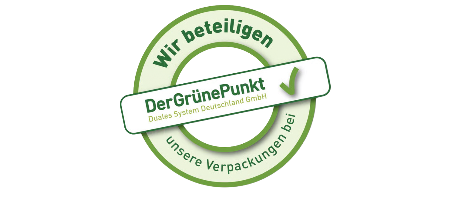 Ich bin Kunde bei Der Grüne Punkt – Duales System Deutschland GmbH. Damit sind meine Verkaufsverpackungen für Deutschland am dualen System "Der Grüne Punkt" beteiligt.