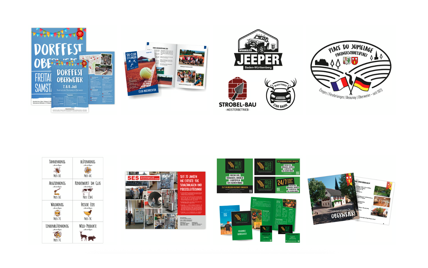 Vom kompletten Werbematerial für eine Veranstaltung (Plakate, Flyer, ...), über die Logogestaltung, Broschüren & Vereinshefte bis hin zu Werbeanzeigen oder Corporate Design Überarbeitungen.