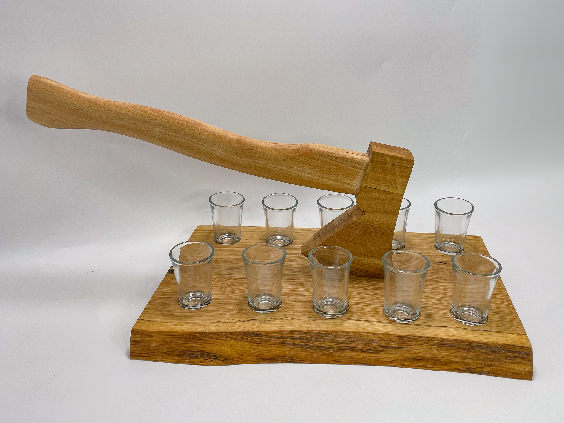 Mit unserem einzigartigen SchnAXTbrett servierst du Shots wie nie zuvor! Dieses handgefertigte Schnapsbrett aus hochwertigem Eichenholz mit Baumkante und einem Axtstiel aus Buche ist nicht nur ein echter Hingucker, sondern auch das perfekte Geschenk für Schnapsliebhaber. Ob auf Geburtstagen, Hochzeiten, Partys oder als originelle Geschenkidee – dein Auftritt ist garantiert unvergesslich.