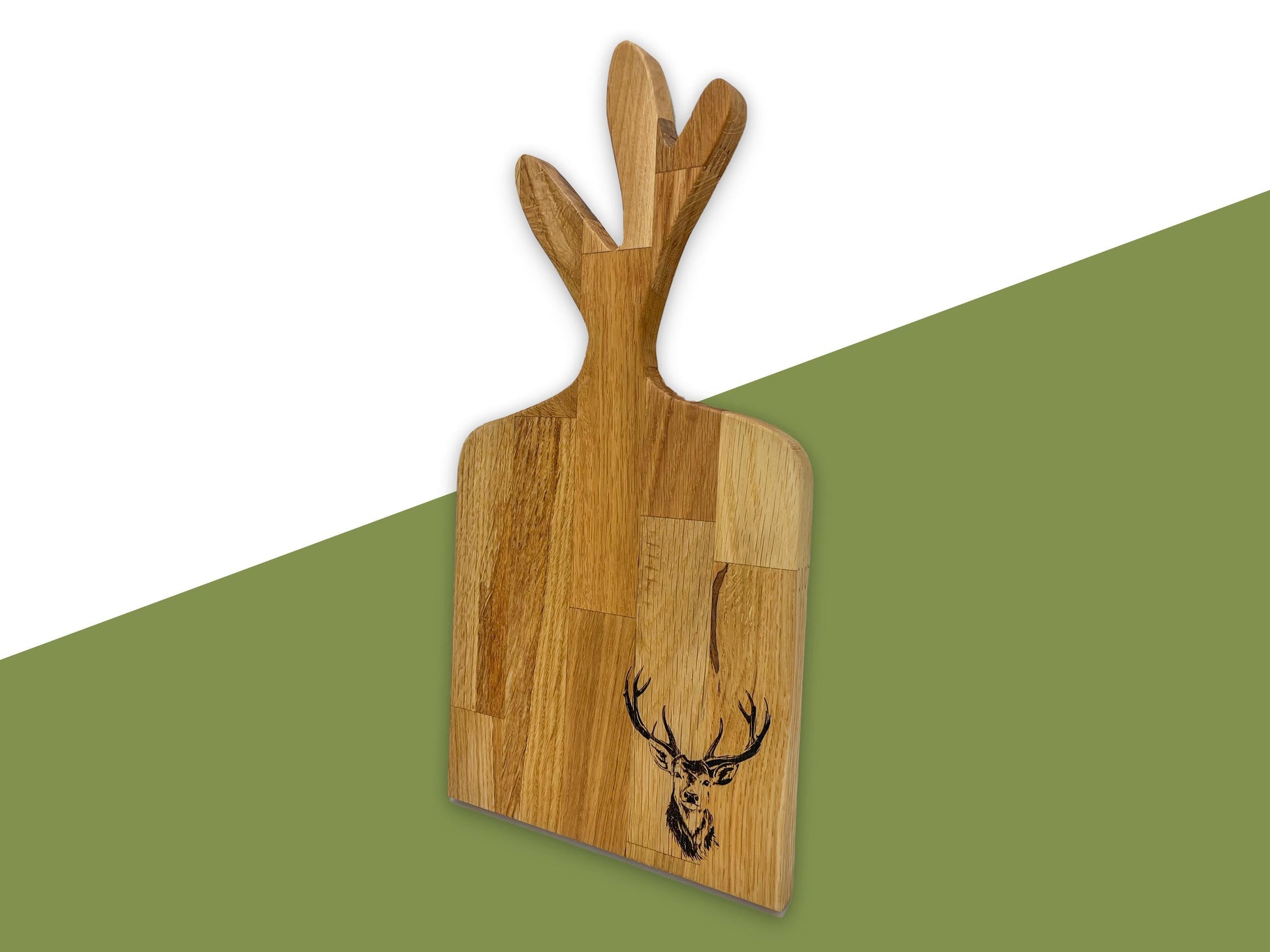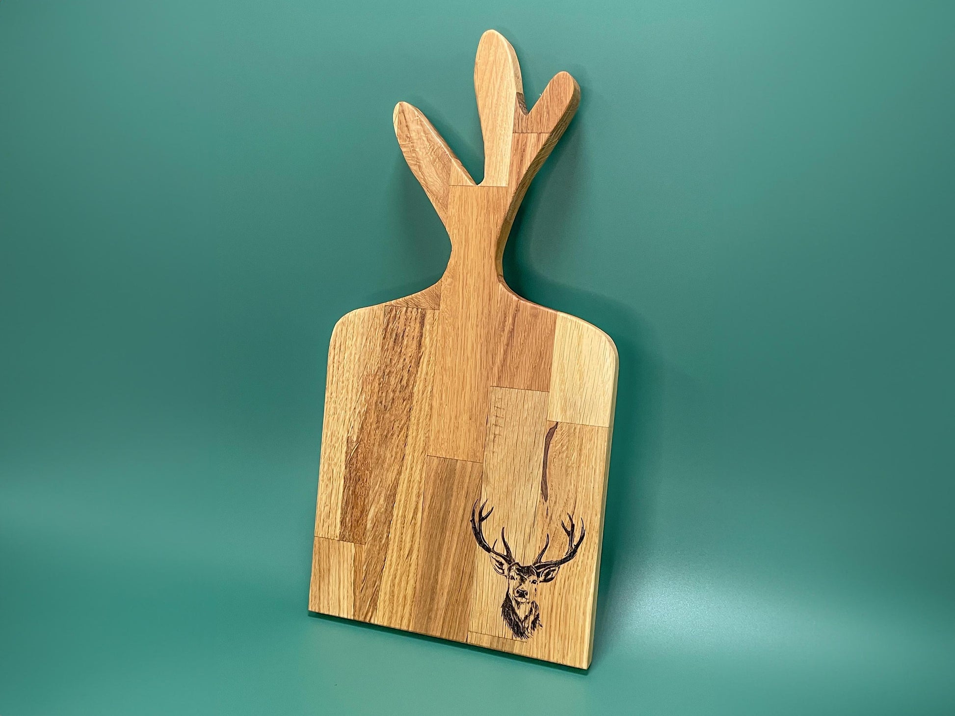 Handgefertigtes Schneidebrett „Hirschgeweih“ aus Eichenholz – Brotzeitbrett, Servierbrett & Geschenkidee
